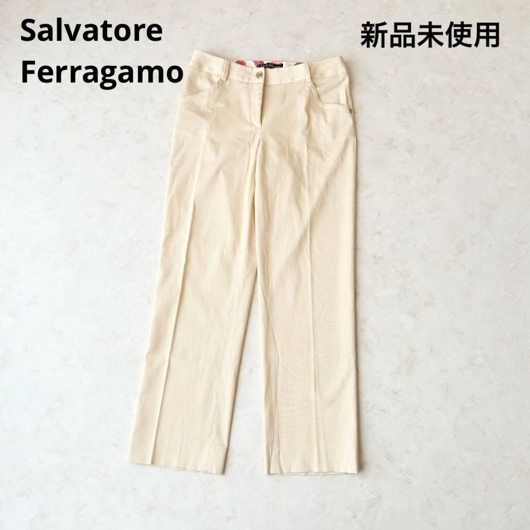 新品タグ付き✨フェラガモ ストレッチパンツ US6 ベージュ 夏物 柄物パンツ