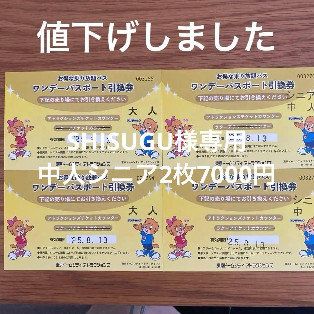 お得な乗り放題パス 東京ドームシティ アトラクションズ 大人 ワンデーパスポート引換券 4枚 有効期限  2025.813